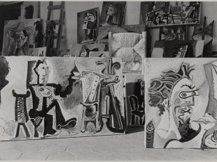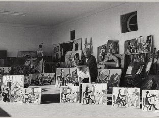 Pablo Picasso au milieu de ses toiles "Le Peintre et son…