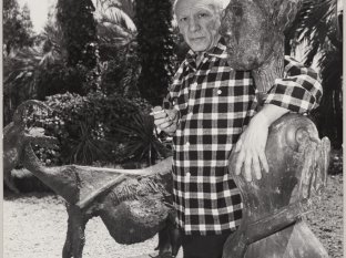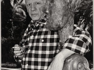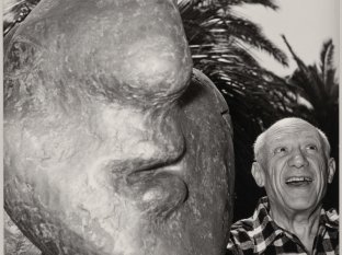 Photographies André Sonine Pablo Picasso caressant le front de "Tête de femme", entre … s.d. APPH6854