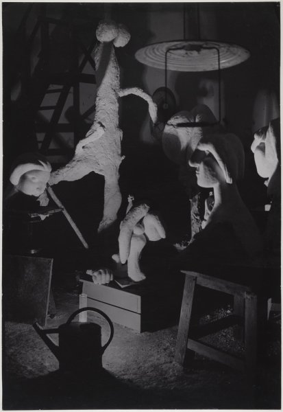 Sculptures en plâtre de nuit dans l'atelier de sculpture, Château de Boisgeloup, Gisors, en décembre 1932