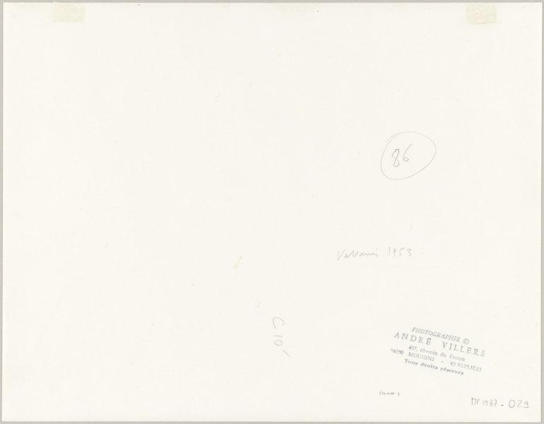 Annotation manuscrite de l'auteur au dos, centrée à droite : "Vallauris 1953"