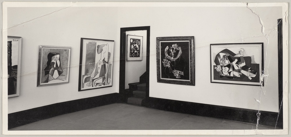 Accrochage de l'exposition Picasso à la galerie Rosengart à Lucerne, en été 1961