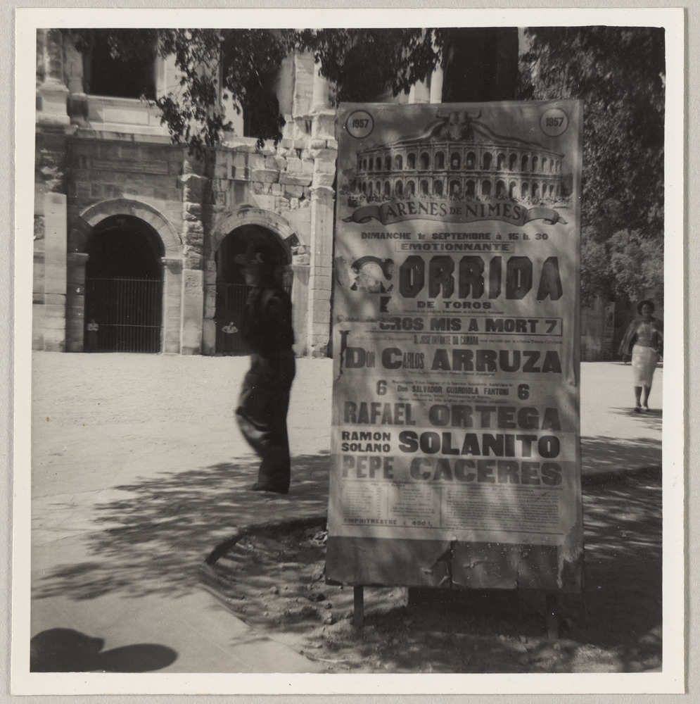 Annotation manuscrite au dos : "Arenes de Nimes. castel de toros. Août 57. Dimanche 1er sept 1957.15,30"