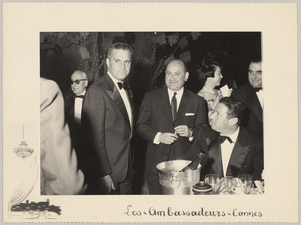 Alexandre Maguy et deux hommes non identifiés aux ambassadeurs, Palais des festivals, Cannes, en 1960