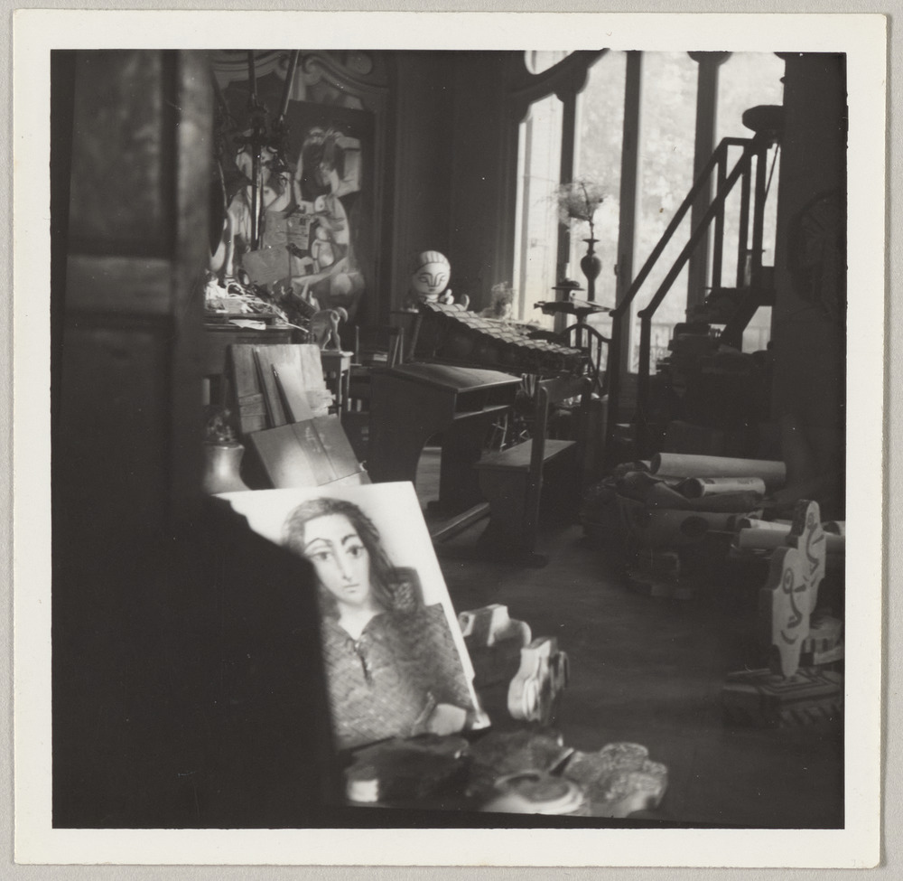 Atelier de La Californie avec un portrait de Jacqueline et des tomettes peintes au sol, Cannes, en 1957