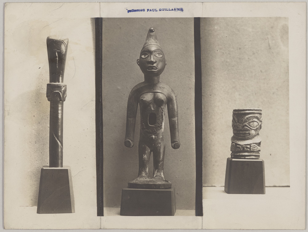 Sculpture Luba (gauche) autre vue reproduite IN Negro book : album de la collection John Quinn, photographiée par Charles Sheeler (1919 - planche XXII), conservé depuis 1926 à l'University of Pennsylvania Museum inv. AF5379 (NB. Les Lubas ou Balubas sont originaires du Congé, anciennement Zaïre)