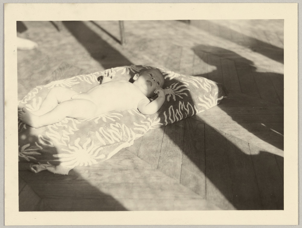 Bernard Picasso bébé allongé au sol à La Californie, Cannes, en [1959]
