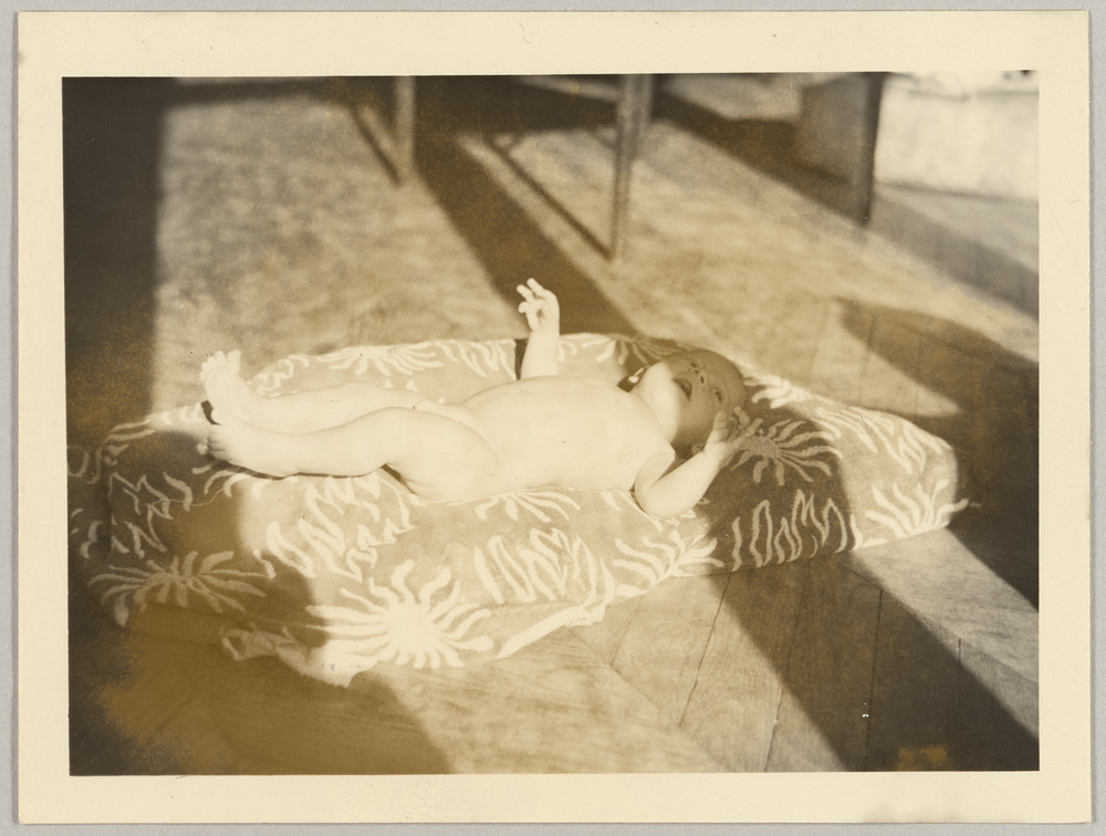 Bernard Picasso bébé allongé au sol à La Californie, Cannes, en [1959]