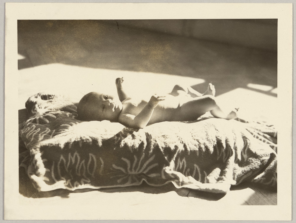Bernard Picasso bébé allongé au sol à La Californie, Cannes, en [1959]