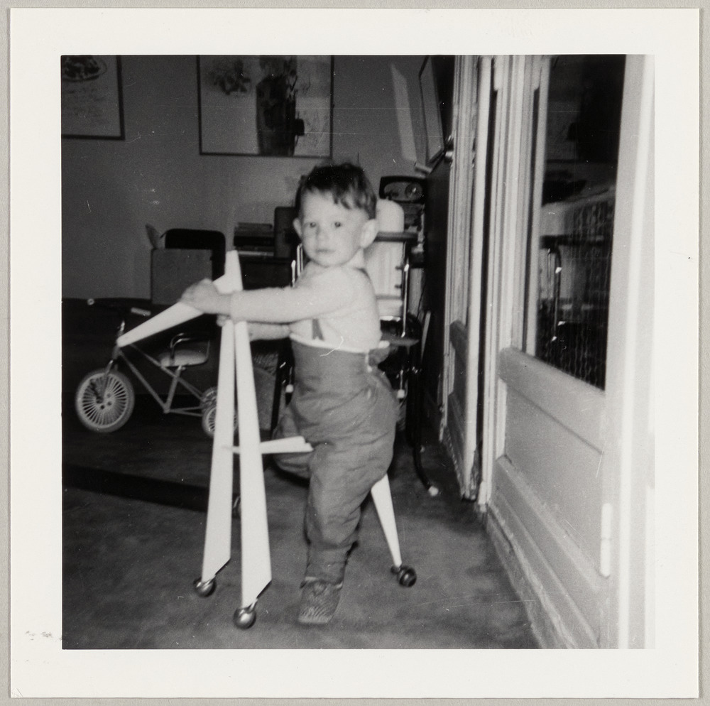 Bernard Picasso à deux ans dans une pièce sur son cheval à roulettes, [Boisgeloup], [1961]