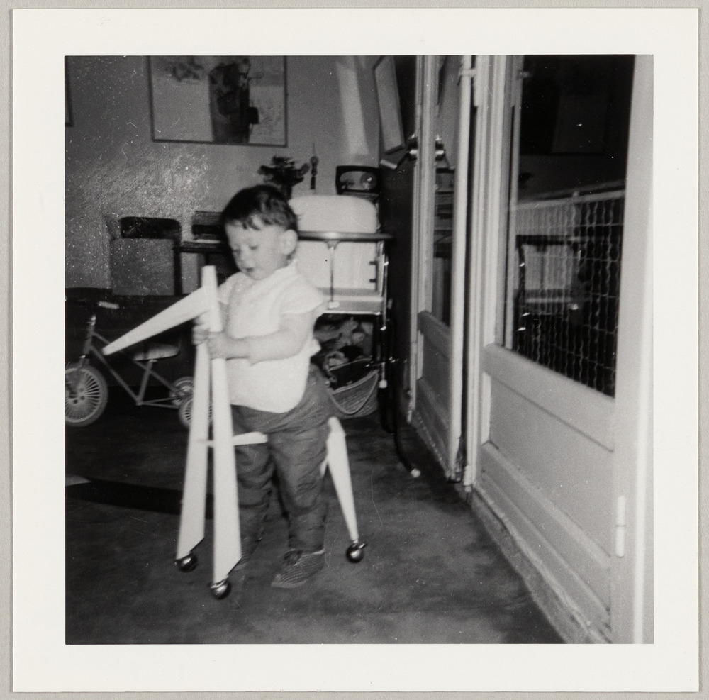 Bernard Picasso à deux ans dans une pièce sur son cheval à roulettes, [Boisgeloup], [1961]