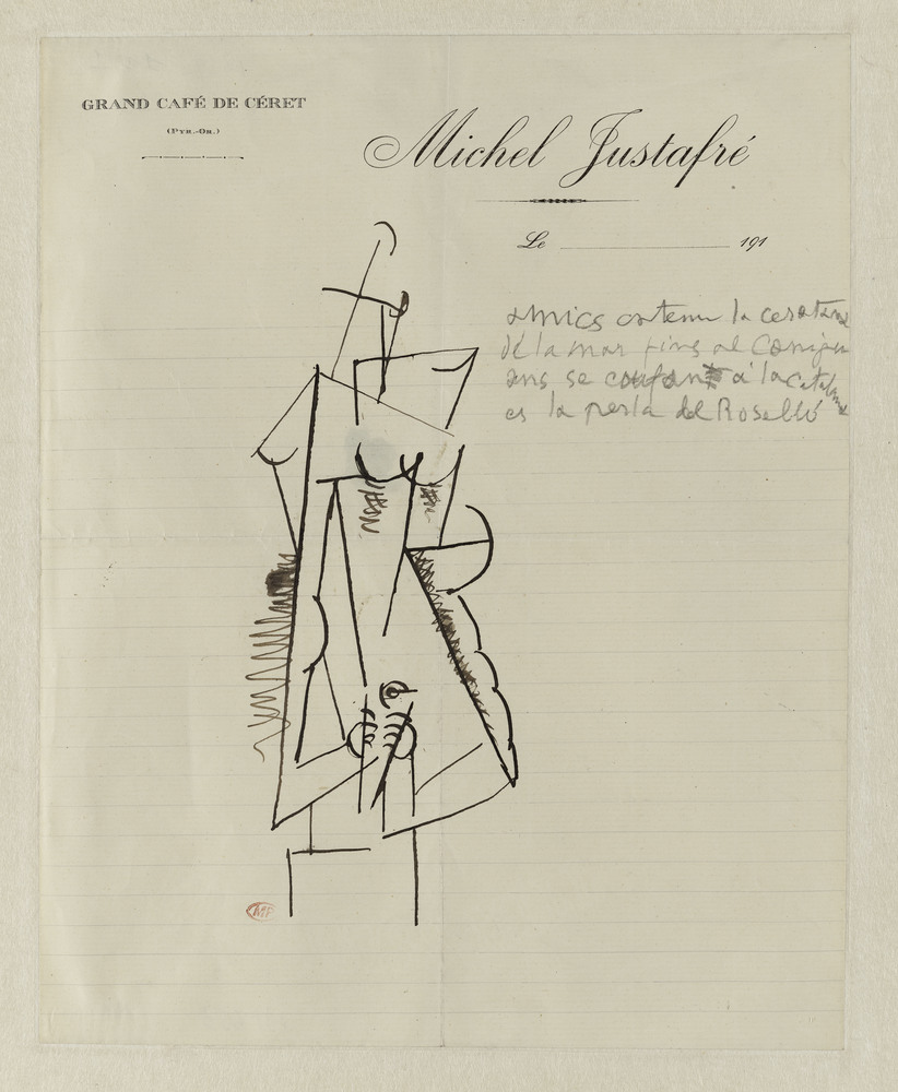 Encre et crayon graphite sur papier à en-tête du "Grand Café de Céret / Michel Justafré"
