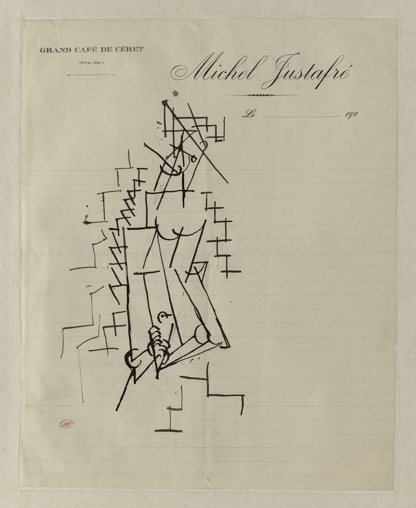 Encre sur papier à en-tête du "Grand Café de Céret / Michel Justafré"