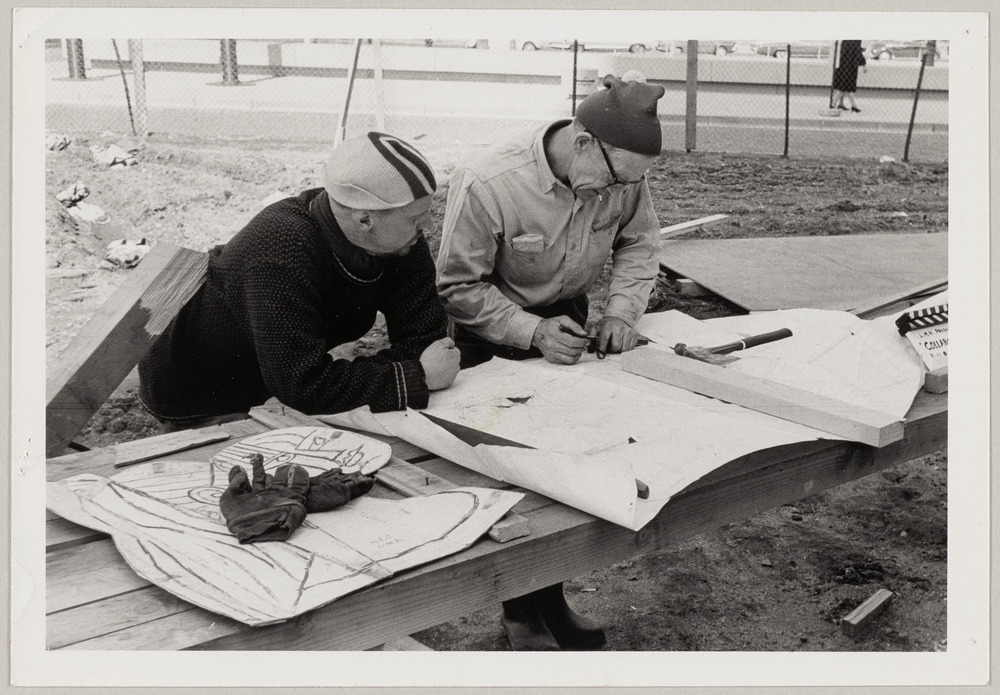 Carl Nesjar et un homme travaillant sur un plan au cours de la réalisation de…