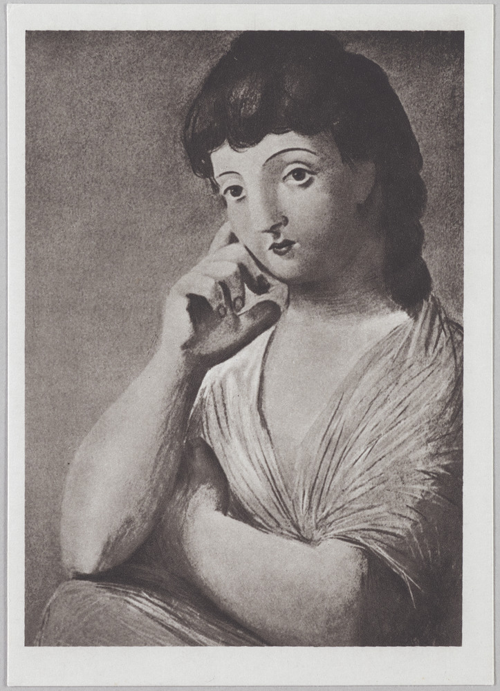 Carte de l'Union des femmes antifascistes espagnoles illustrée par une huile "Femme accoudée" de Pablo Picasso