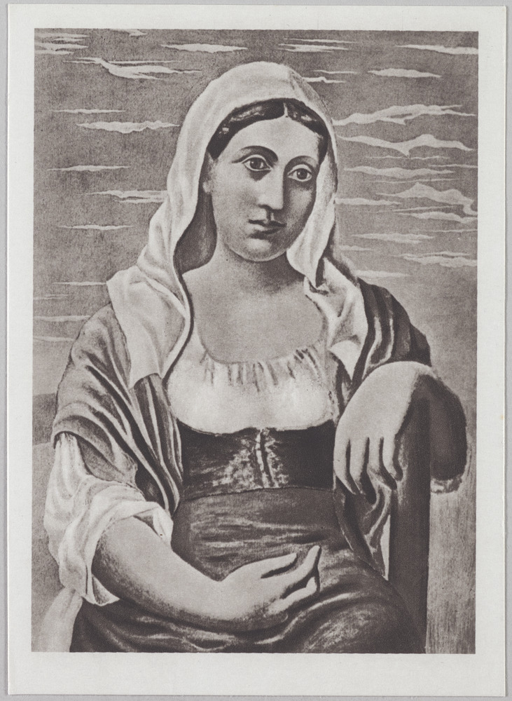 Carte de l'Union des femmes antifascistes espagnoles illustrée par une huile "Portrait de femme" de Pablo Picasso