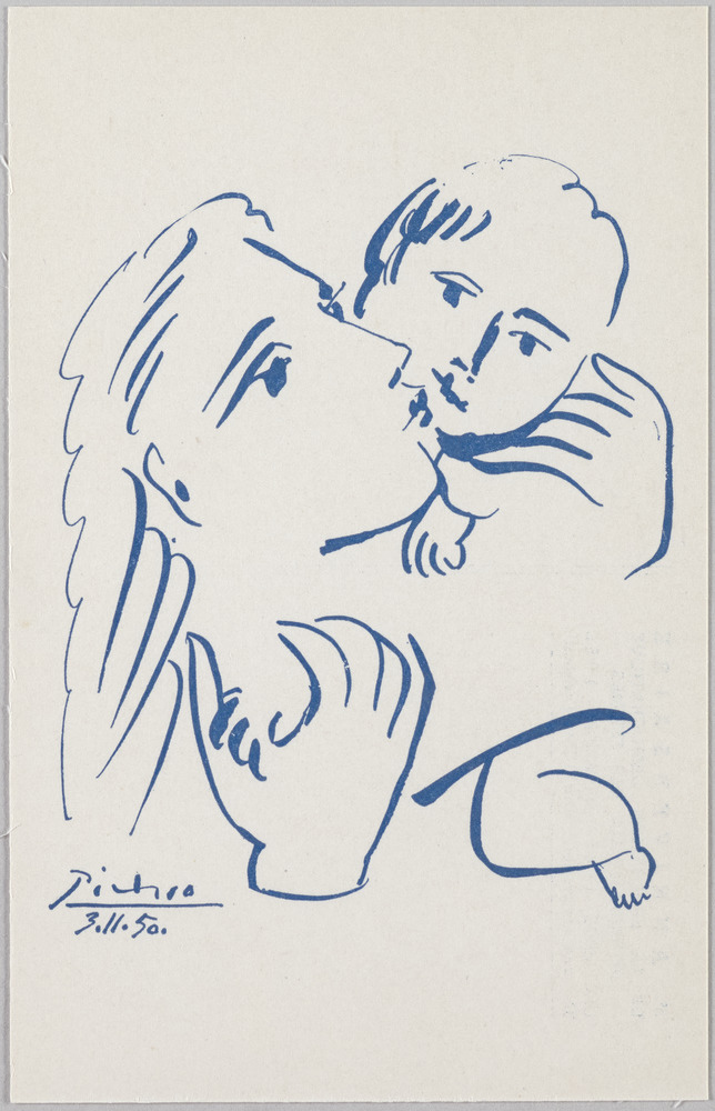 Avec un dessin à l'encre "Mère et son enfant" de Picasso daté du 3 novembre 1950