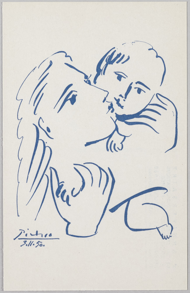 Avec un dessin à l'encre "Mère et son enfant" de Picasso daté du 3 novembre 1950