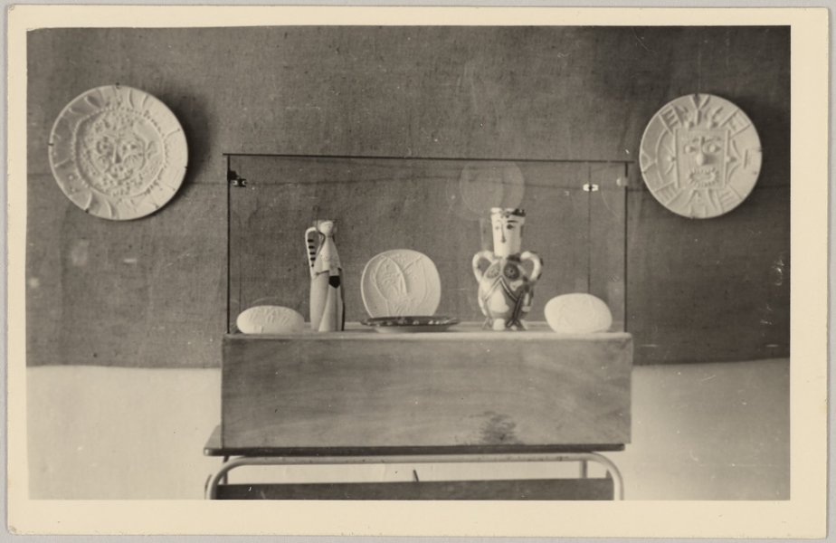 Céramiques de l'exposition "Picasso" dans la 2e salle du Musée d'art Moderne de Céret, fin août - début septembre 1958