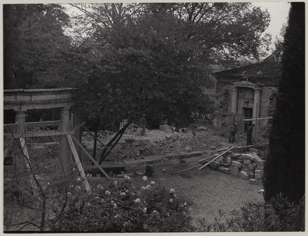 Chantier du mur du château de Castille, propriété de Douglas Cooper, Rémoulins, en 1963