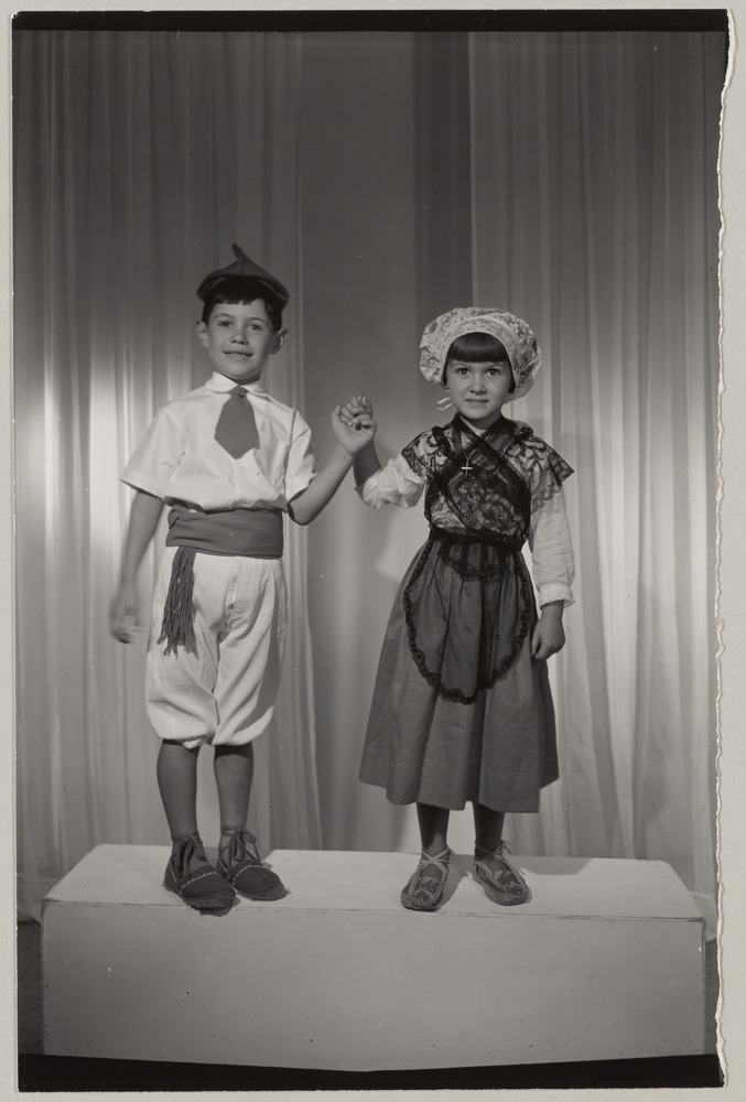 Claude et Paloma Picasso en costumes catalans, dans le studio de Studio Visages, rue de l'Ange, Perpignan, en août 1954