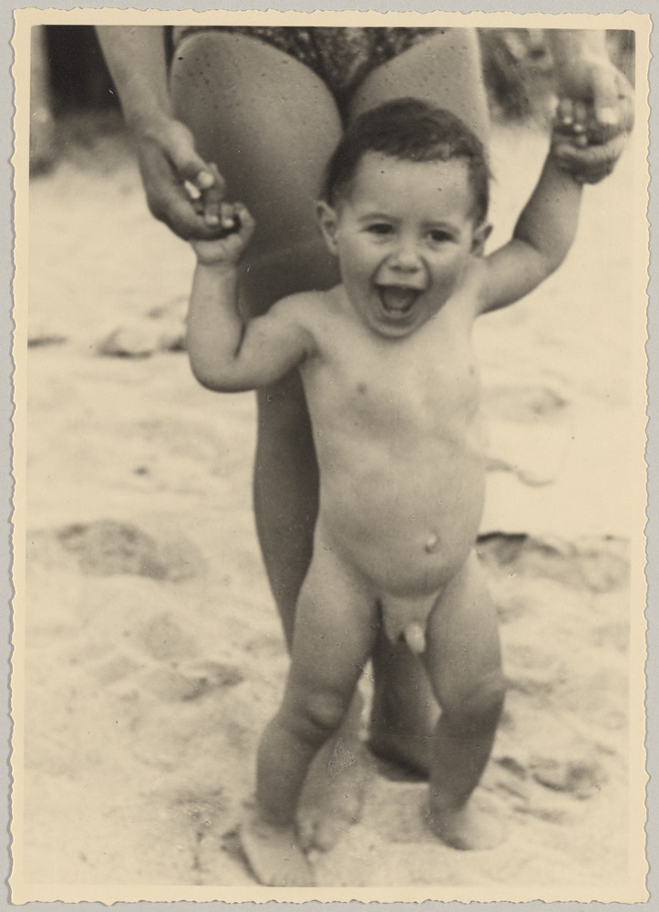 Claude Picasso apprenant à marcher avec Françoise Gilot sur la plage à Golfe-Juan, en 1948