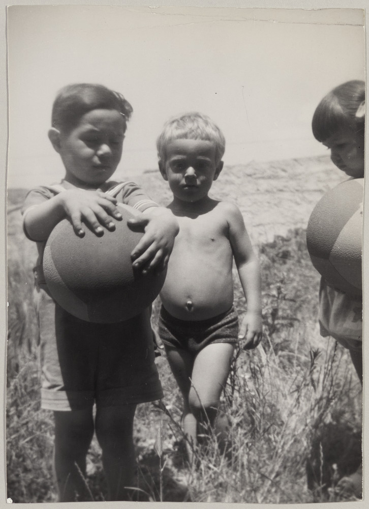 Claude Picasso avec Merlin Hare et Paloma Picasso dans le jardin de l'atelier du Fournas, Vallauris, en été 1951