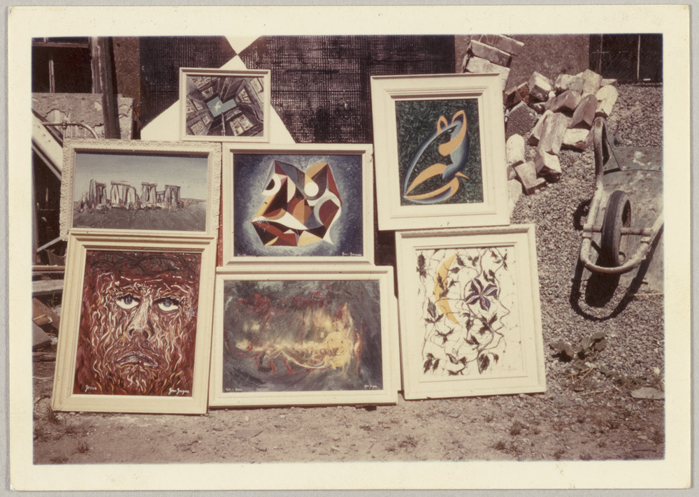 Compositions picturales et portraits "Habour", "Stonehenge", "Beethoven", "Seated nude", Jesus", "Dying Salome", "Chopin" par Jean Jacques, à Jersey, en 1961