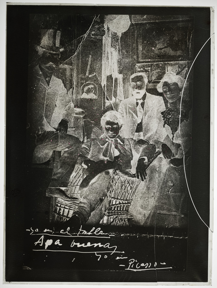 Annotation de Picasso en espagnol sur le tirage original : "Yo en el taller, Apa buenas, Yo Picasso" (traduction : Moi dans l'atelier, au revoir, Picasso)