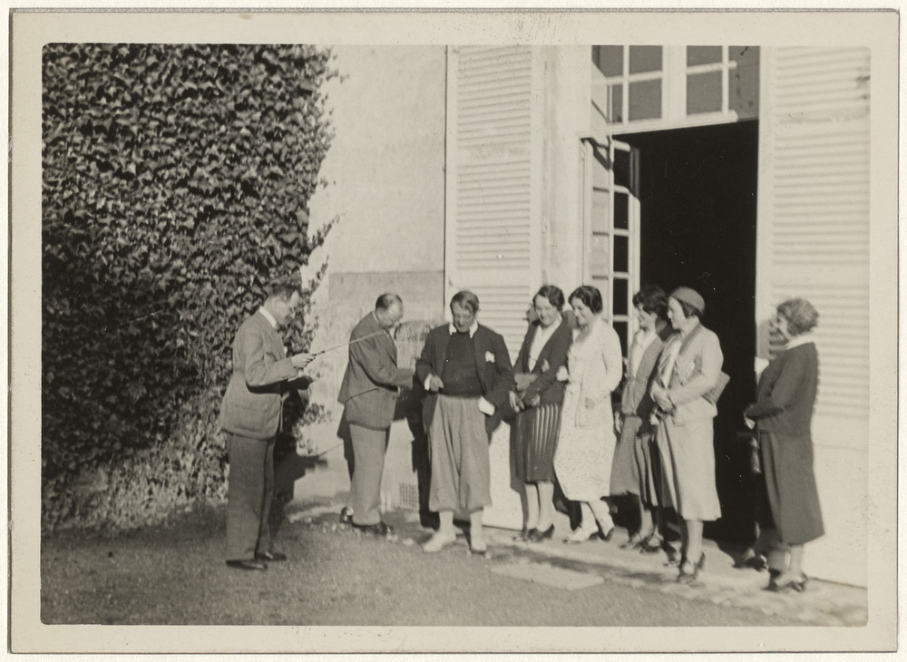 Daniel-Henry Kahnweiler, Elie Lascaux avec Pablo Picasso, Louise Leiris, Olga Picasso, Berthe Lascaux, Lucie Kahnweiler et la gouvernante de Paul au Château de Boisgeloup, Gisors, début années 1930