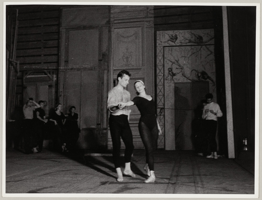Danseurs sur le plateau, pour le ballet "Hommage à Picasso, dessins chorégraphiques" de Michael Ashlin, présenté à Cannes, hôtel Martinez, le 4 avril 1957