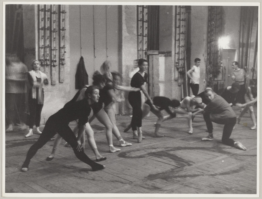 Danseurs sur le plateau, pour le ballet "Hommage à Picasso, dessins chorégraphiques" de Michael Ashlin, présenté à Cannes, hôtel Martinez, le 4 avril 1957