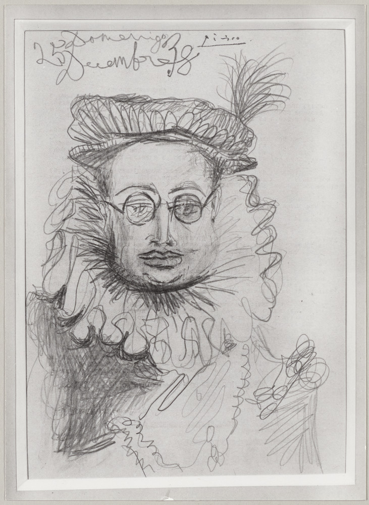 Dessin au crayon [Portrait de Jaime Sabartés costumé] du 25 décembre 1938
