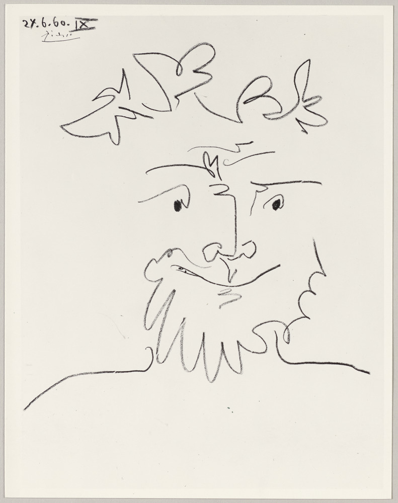 Copié dans le presse-papier :Dessin au crayon "Tête couronnée", 24 juin 1960 - s.d. - https://cep.museepicassoparis.fr/explorer/dessin-au-crayon-tete-couronnee-24-juin-1960-apph10971