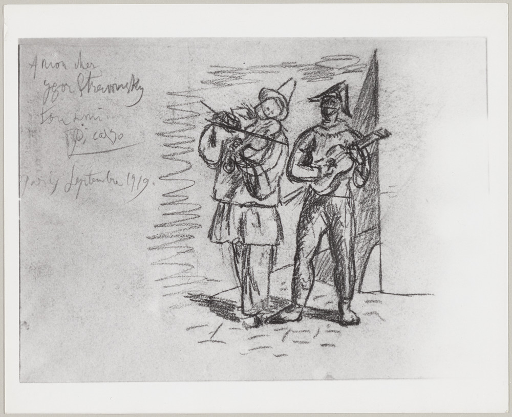 Dessin dédicacé à Igor Stravinsky "A mon cher Ygor Stravinsky ton ami Picasso Paris septembre 1919"