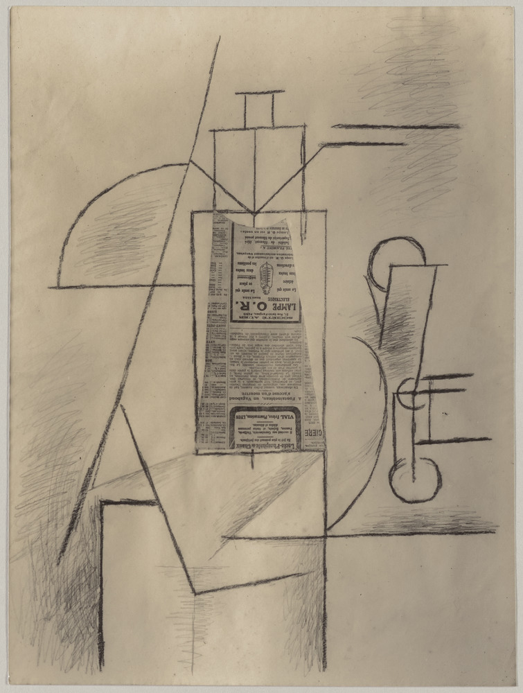 Copié dans le presse-papier :Dessin au fusain et crayon et papier collé, "Bouteille et verre", 1912 - s.d. - https://cep.museepicassoparis.fr/explorer/dessin-au-fusain-et-crayon-et-papier-colle-bouteille-et-verre-1912-apph11780
