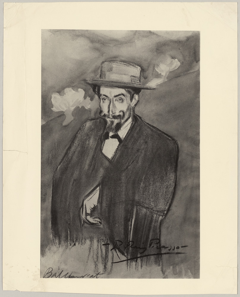 Dessin au fusain et lavis "Portrait de J. Vallhonrat", Barcelone, 1900