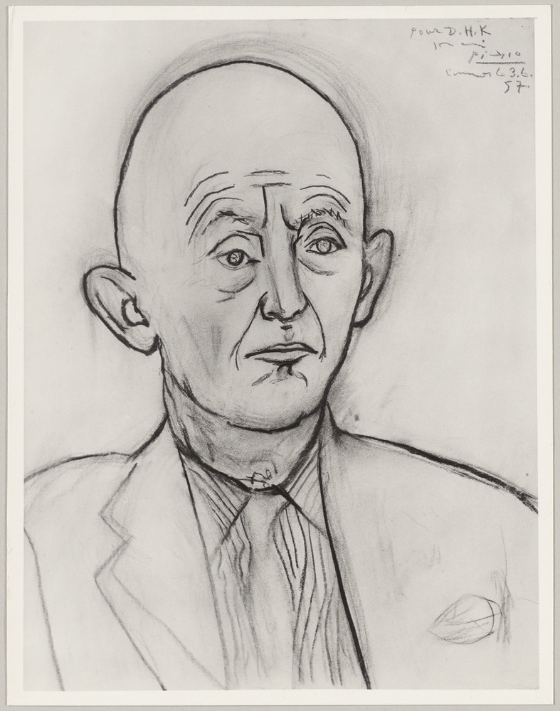 Dessin au fusain "Portrait de D.-H.Kahnweiler", 3 juin 1957 et dédicacé à D.-H.Kahnweiler