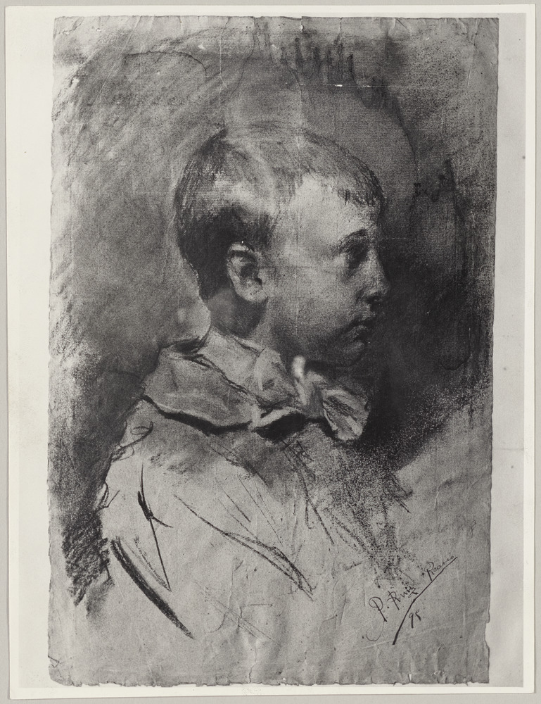 Dessin au fusain, "Portrait de profil d'un jeune garçon", 1895