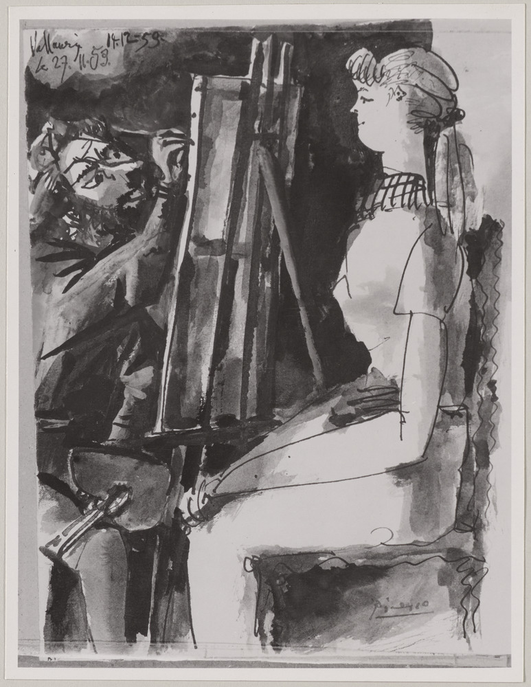 Dessin au lavis et gouache "Peintre et modèle", Vallauris, 27 novembre 1953 - 14 décembre 1953