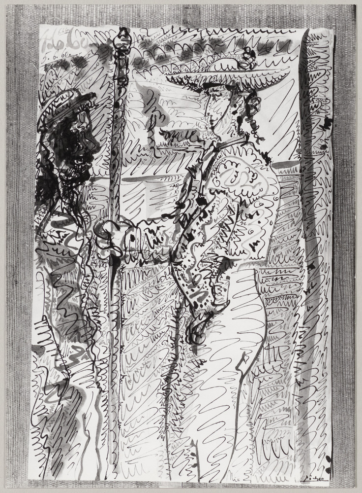 Dessin au lavis "Picador et personnages", 4-5-6 juin 1960
