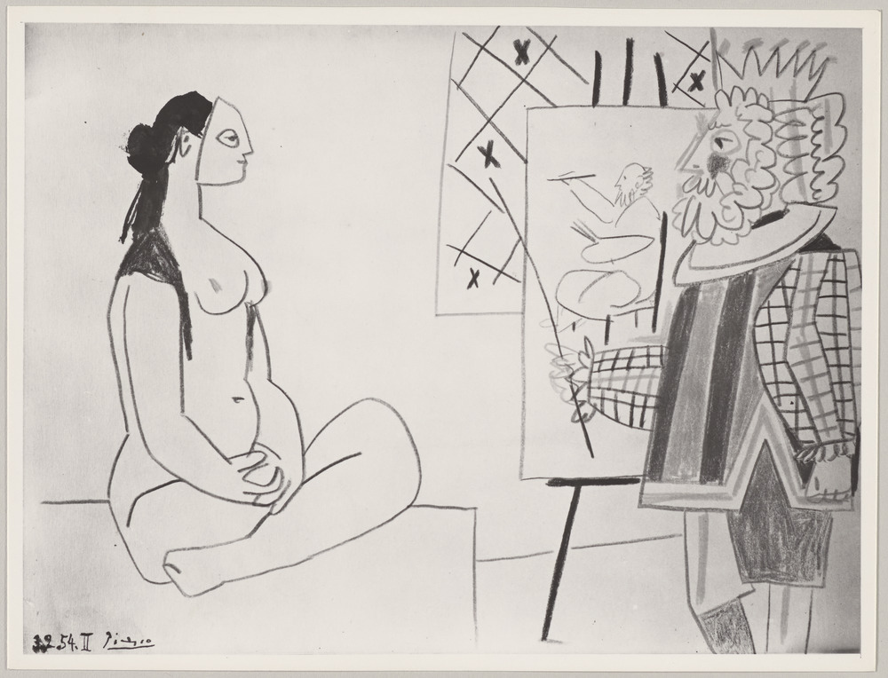 Copié dans le presse-papier :Dessin aux crayons de couleur "Dans l'atelier", 3 février 1954 - s.d. - https://cep.museepicassoparis.fr/explorer/dessin-aux-crayons-de-couleur-dans-latelier-3-fevrier-1954-apph10570