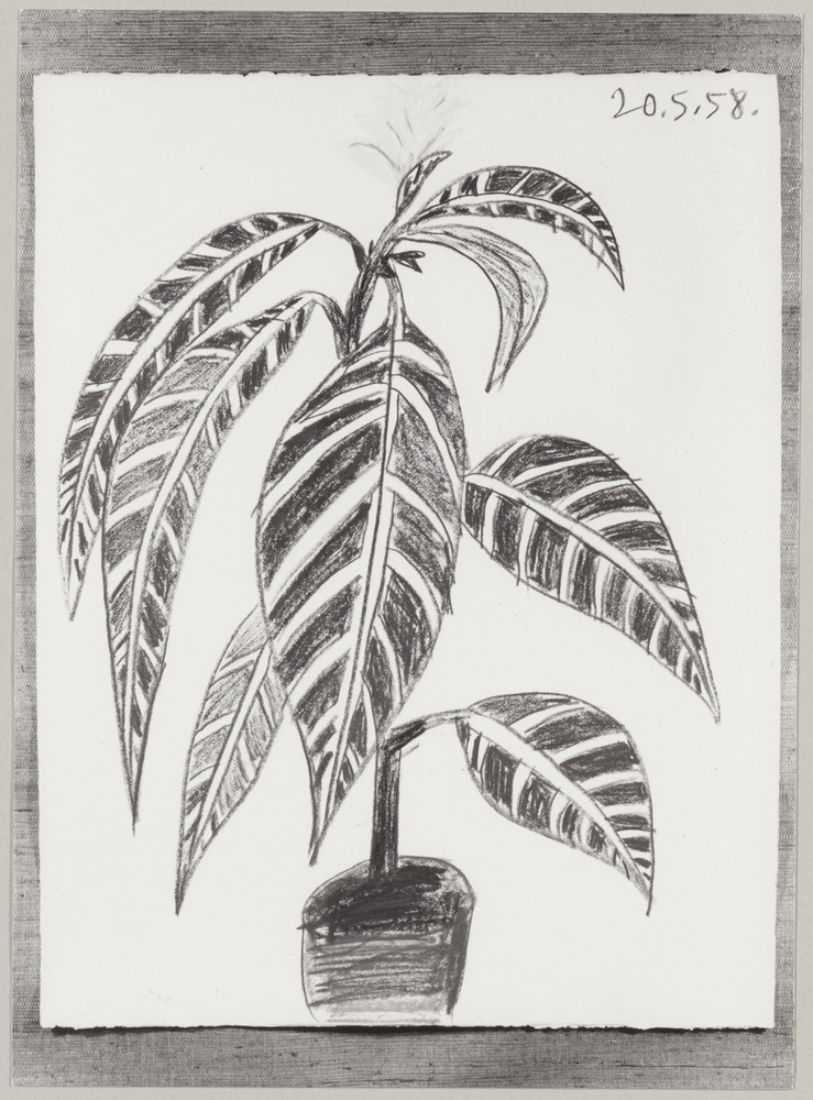 Dessin aux crayons de couleur "Etude de plante fleurie", 20 mai 1958