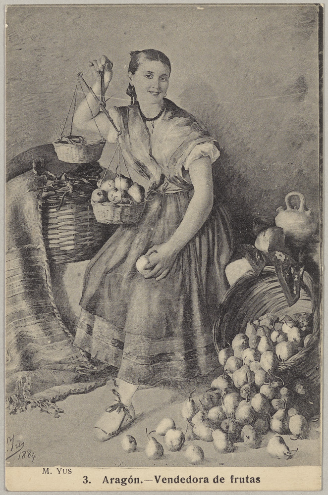 Dessin d'une vendeuse de fruits d'Aragon, 1884