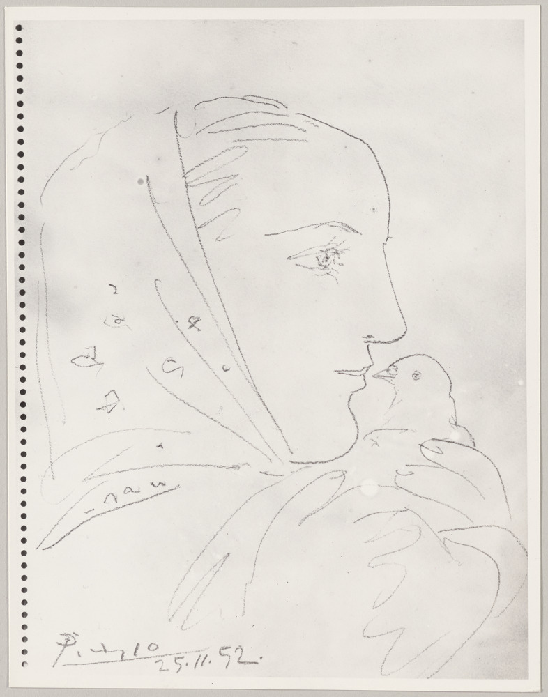 Dessin à la mine de plomb "La femme à la colombe", 25 novembre 1952