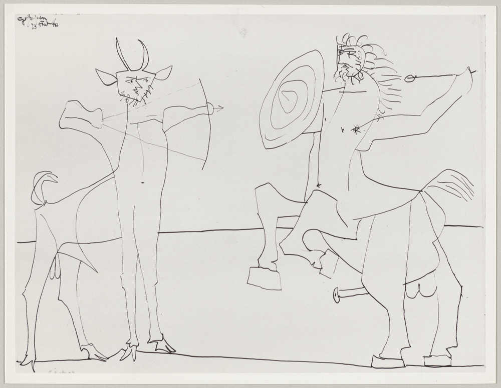 Dessin à l'encre de chine "Combat de faune et de centaure", Golfe-Juan, 23-24 août 1946
