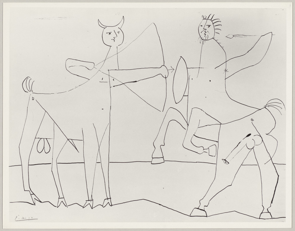 Dessin à l'encre de chine "Combat de faune et de centaure", Golfe-Juan, 23-24 août 1946