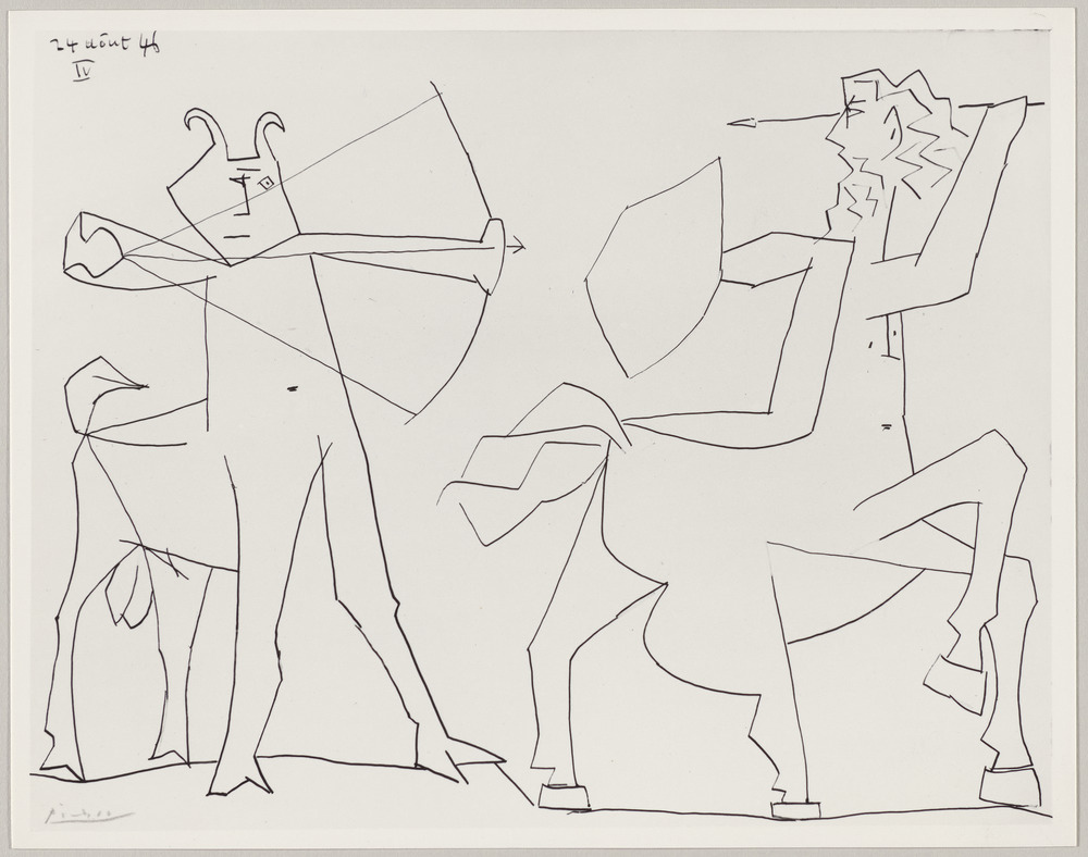Dessin à l'encre de chine "Combat de faune et de centaure", Golfe-Juan, 24 août 1946