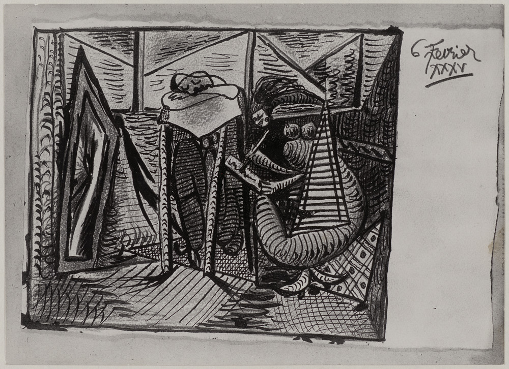 Copié dans le presse-papier :Dessin à l'encre de chine "Composition" du 6 février 1935 - s.d. - https://cep.museepicassoparis.fr/explorer/dessin-lencre-de-chine-composition-du-6-fevrier-1935-apph9962