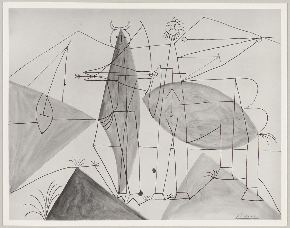 Dessin à l'encre de chine et aquarelle "Combat de faune et de centaure", Golfe-Juan, 21 août 1946