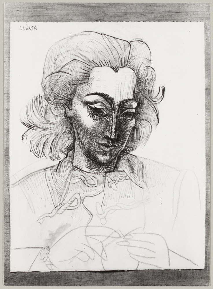 Dessin à l'encre de chine et fusain "Portrait de Jacqueline", 21 octobre 1955